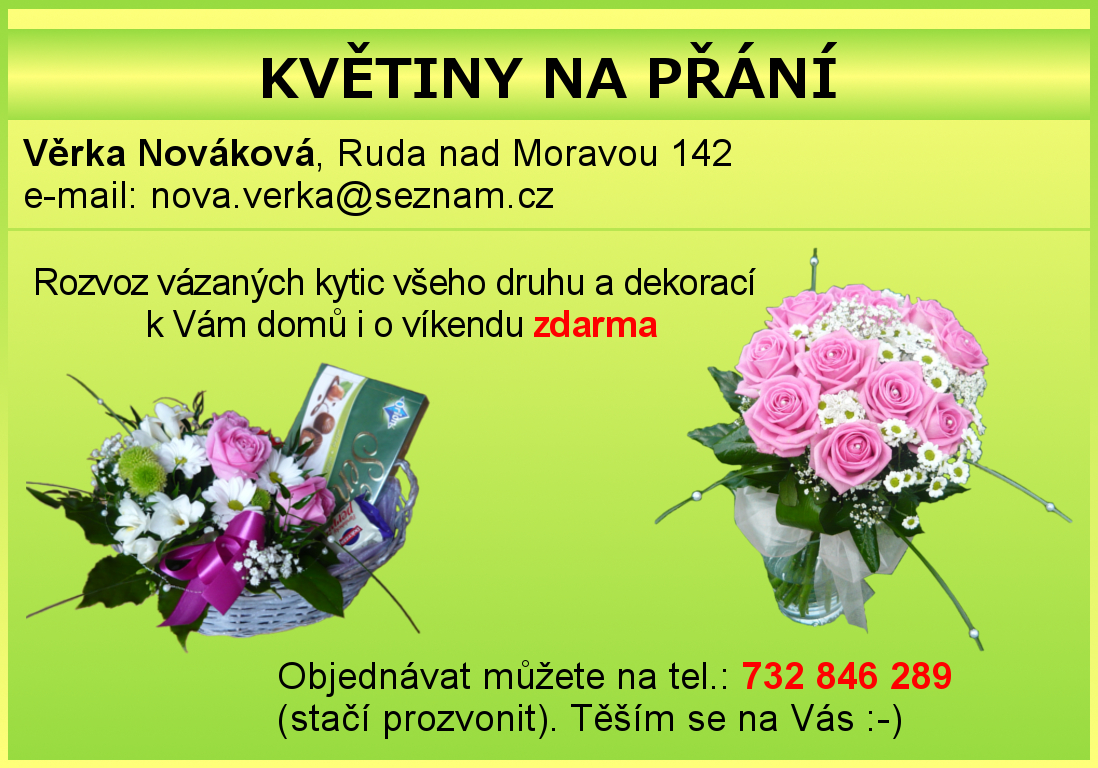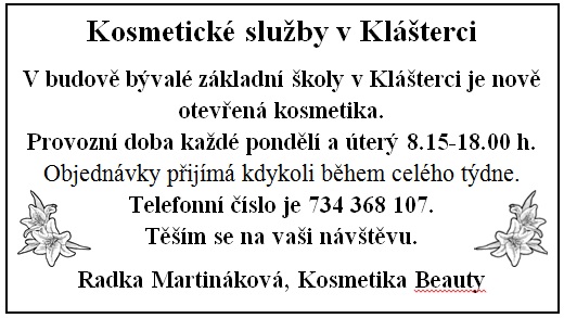Kulturní komise při OÚ Olšany pořádá nákupní zájezd do Polska - Kudowa Zdroj. Termíny: sobota 23. 3. 2024, sobota 13. 4. 2024 a sobota 27. 4. 2024. Odjezd v 6.40 hod. od OP papírny, cena 150 Kč, přihlášky na OÚ Olšany.